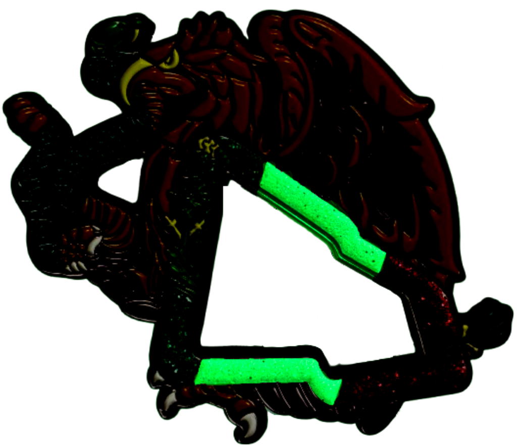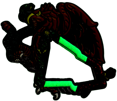 Specially made for new era emblem. White part glows in the dark. Beautiful Green Glitter, White Glow Glitter, and Red Glitter enamel.