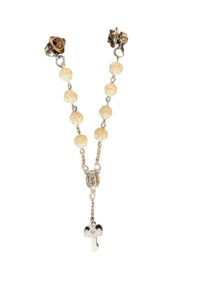 Hand crafted by me. 8 Unique white rose beads carefully put together to create this beautiful rosary pin.